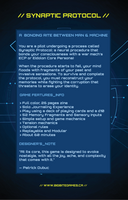 A solo journaling game of mechs, memory, and identity crises. Ironically, don’t expect to be shooting and fighting. You’re not even piloting it… yet. In Synaptic Protocol, you’re undergoing a procedure to synchronize your mind with your mech’s Eidolon Persona Core (ECP). When the procedure begins, the bond destabilizes, and you’re thrown into a spiral of hallucinations, corrupted memories, and sensory glitches. Your mission? Piece yourself back together before your mind fractures completely.